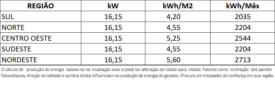 Atenção o gerador tem sua capacidade de geração de acordo com incidência de irradiação solar e a correta instalação, os dados de geração estão baseados no mapa* de radiação global horizontal média anual do Brasil.