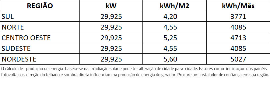 Atenção o gerador tem sua capacidade de geração de acordo com incidência de irradiação solar e a correta instalação, os dados de geração estão baseados no mapa* de radiação global horizontal média anual do Brasil.